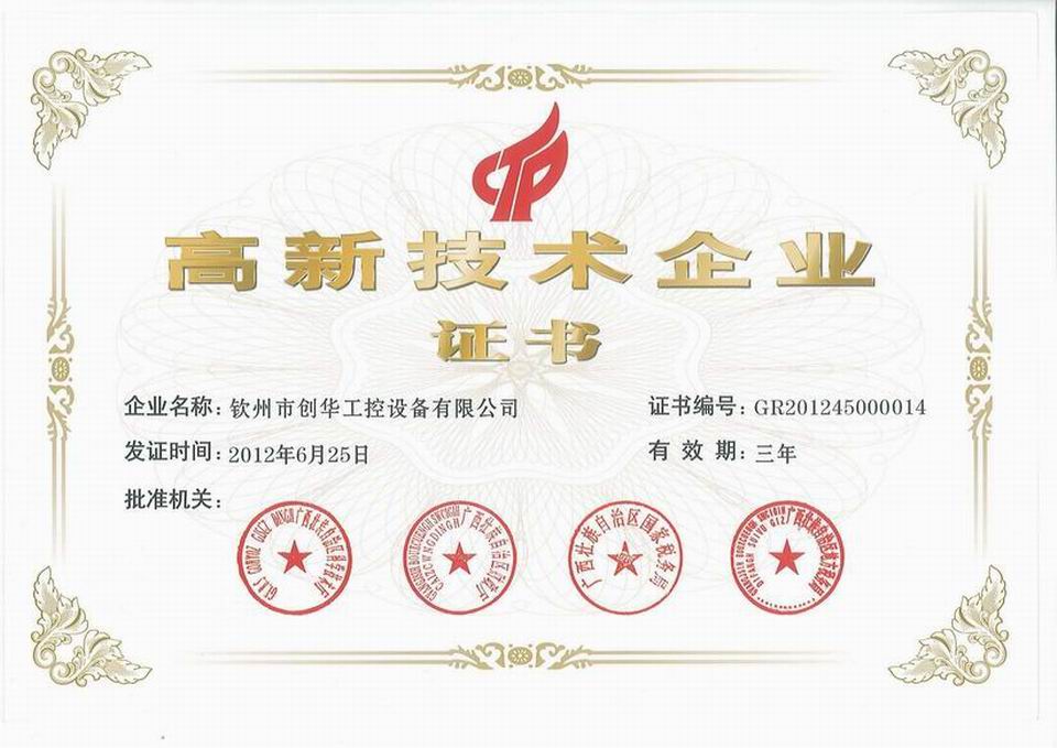 經(jīng)廣西高新技術(shù)企業(yè)認(rèn)定工作領(lǐng)導(dǎo)小組辦公室專家評審、廣西高新技術(shù)企業(yè)認(rèn)定工作領(lǐng)導(dǎo)小組成員單位合議,以及國家高新技術(shù)企業(yè)認(rèn)定工作領(lǐng)導(dǎo)小組公示和備案(國科火字【2012】65號),我公司榮獲2012年度廣西第一批高新技術(shù)企業(yè)認(rèn)定。