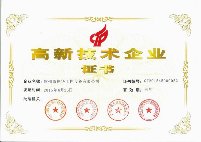 欽州市創(chuàng)華工控設(shè)備有限公司順利通過(guò)廣西壯族自治區(qū)2015年第一批高新技術(shù)企業(yè)復(fù)審。